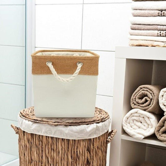 Panier De Rangement Linge - LingeBox™ - Kaki & Blanc